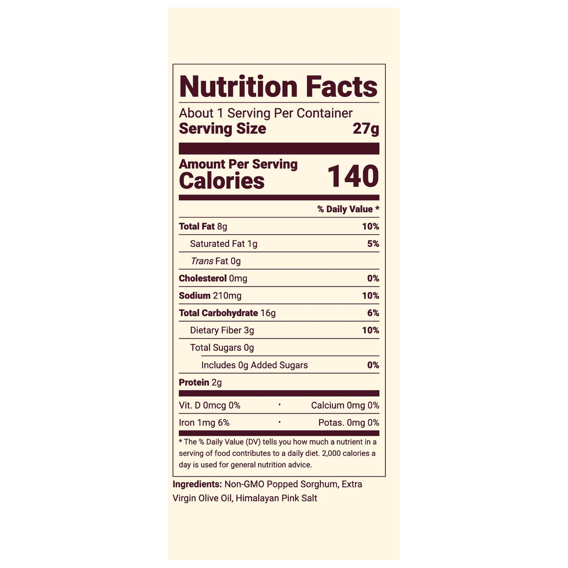 Cob Foods Olive Oil Pink Salt Popped Sorghum (1oz Bag)