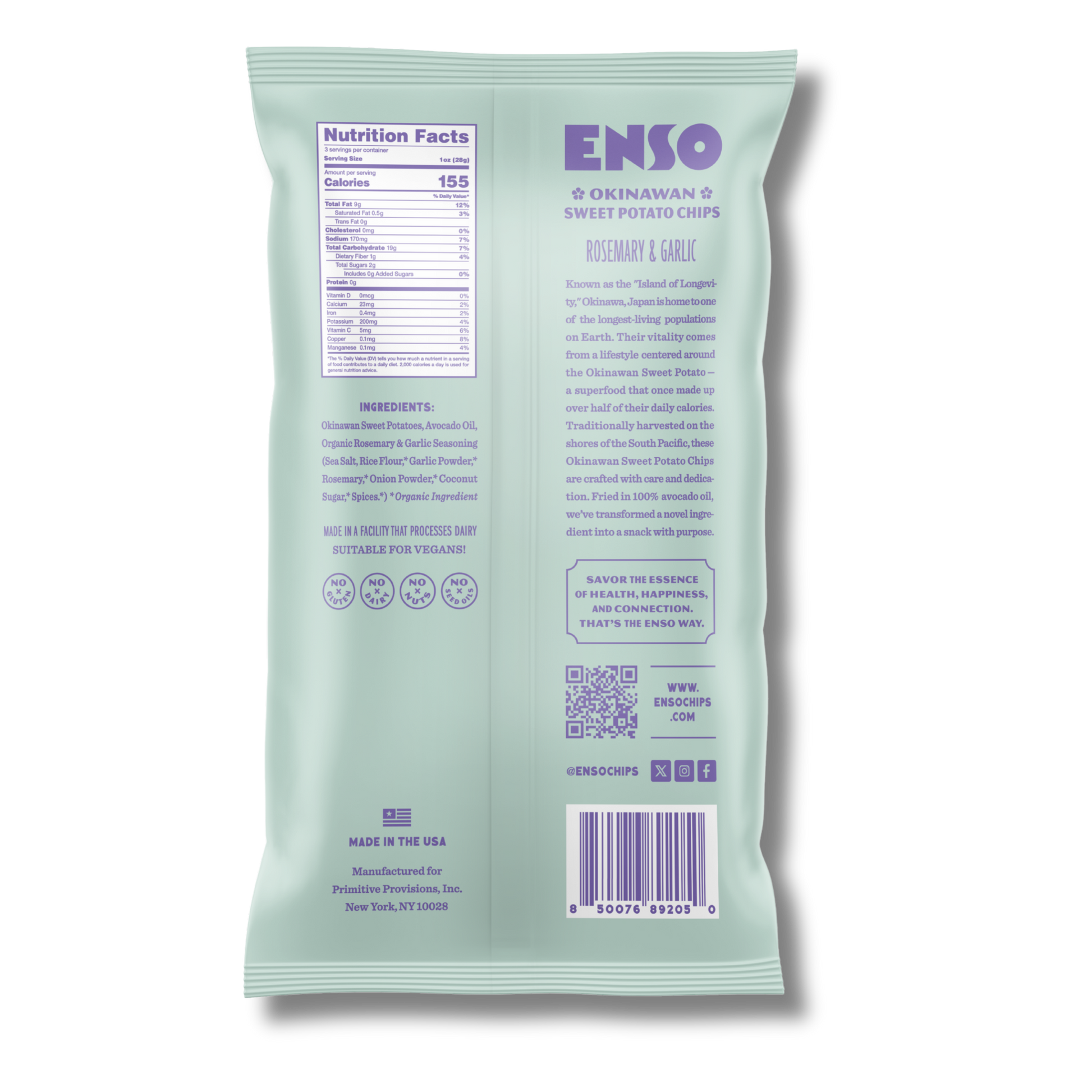 For generations, Okinawans have relied on the nutrient-rich Okinawan sweet potato, a superfood that once made up more than half of their daily calories, fueling their vitality and resilience. Enso has taken inspiration from these time-honored traditions to bring you a better way to snack — one rooted in health, longevity, and real ingredients. [Product description written by Enso]